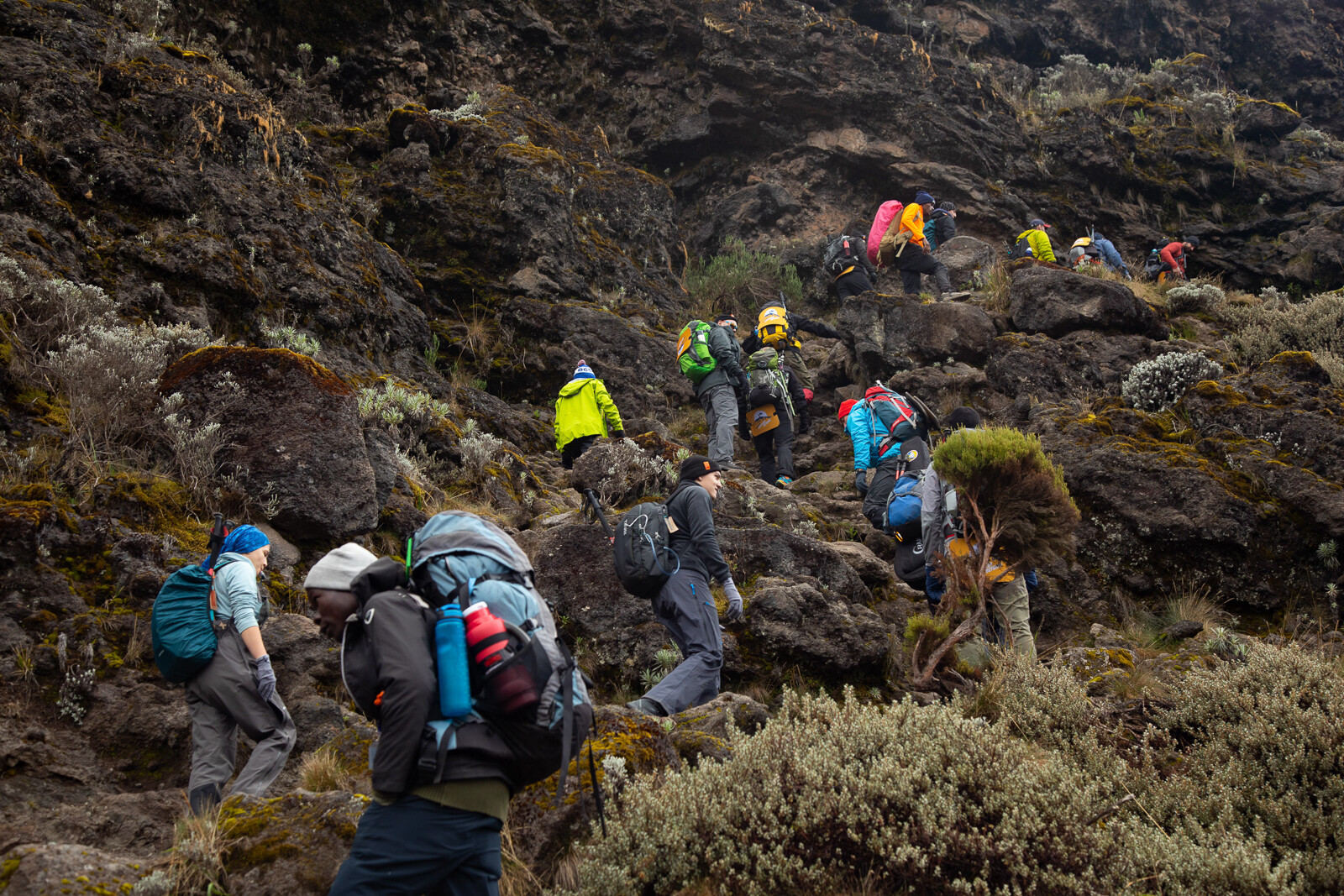 Ранний подъем, завтрак и начало подъёма на стену Барранко. Восхождение по стенке ущелья не представляет сложности и занимает всего около 1 часа, после подъема мы отдыхаем, перекусываем, делаем фотографии на фоне вулкана Кибо и выдвигаемся к лагерю Каранга (4050 м).